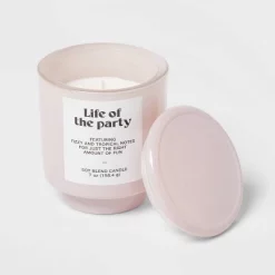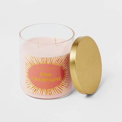Set the right mood at home with the 15.1oz Jar Inline Pink Champagne Candle – Opalhouse™. This scented candle comes in a lidded glass jar that shows the color of the wax and lends to a soft ambiance. The soft scent of champagne will soothe nerves and give a refreshing vibe. With a long burn time, you can store this candle and light it for when you need a well-deserved break.