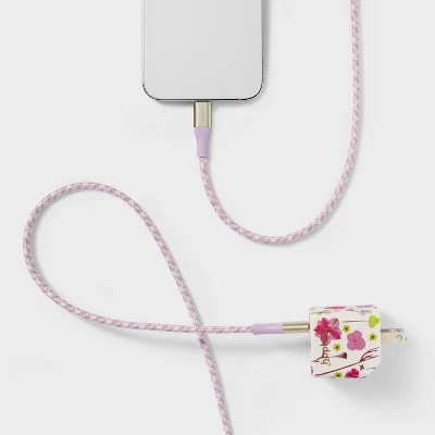 Keep your iPhone and devices charged with the 2-Port Wall Charger with 6′ Lightning to USB-C Cable featuring soft floral designs from heyday™. Built for durability, the adapter features short-circuit protection and surge protection abilities to keep your devices safe. With both USB-C and USB-A outputs on the adapter, it delivers high charging speeds. The package includes a 6-foot USB-C to lightning cord and a wall adapter with a charge indicator light, ensuring you’re always ready to power up your devices on the go.