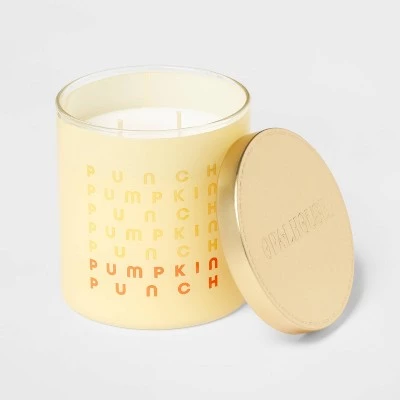 Set the right mood at home with the 15oz Colored Glass Jar with Label Pumpkin Punch Candle Yellow from Opalhouse™. This scented candle comes in a lidded glass jar that lends to a soft ambiance. The cranberry, pumpkin and orange scent will awaken your senses and give a refreshing vibe. With a burn time of up to 50 hours, you can store this Opalhouse™ 15oz Colored Glass Jar with Label Pumpkin Punch Candle Yellow and light it up when you need a well-deserved break.