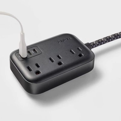 Ensure your devices stay charged and protected with the 6′ Surge Protector 3OL + 2C + 1A in black from heydayâ„¢. This board offers 3 AC ports, 1 USB-A, and 2 USB-C ports for all your gadgets and devices. The space-saving flat plug design fits easily behind furniture and the 6-foot braided power cord gives you the flexibility to place it anywhere you like. It comes with a 1-year limited warranty and offers surge protection of up to 500 joules to keep your devices safe.