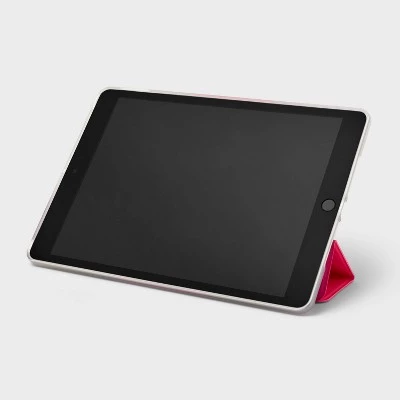 Keep your iPad safe with the Apple iPad 10.2-inch and 10.5-inch and Pencil Case in neon pink from heyday™. This case combines functionality and style with a built-in stylus holder for easy use and portability. The raised edges protect the buttons and camera from drop damage and the front cover stays in place with a magnetic hold to keep the screen safe. Made for ultimate convenience, the front cover also transforms into a durable tri-fold stand to hold your iPad upright while you use it for work or entertainment. With a 1-year limited warranty, the plastic design ensures the safety of your device, keeping it scratch and damage proof.