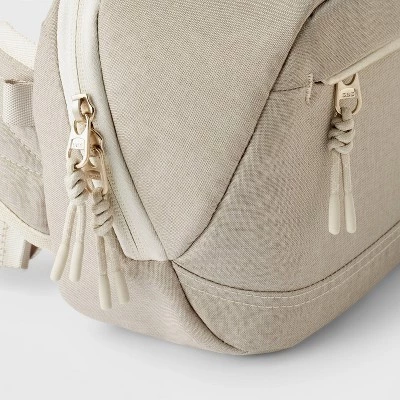 Carry your camera gear securely with the Camera Sling Pack by heydayâ„¢. Crafted from recycled polyester in a minimal beige design, this waterproof pack provides protection for your photography equipment. The dedicated lens pockets for organized storage and a front zip pocket add to the convenience. Backed by a 1-year limited warranty, carry your camera with ease and capture life with confidence.