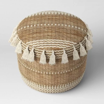 Enliven your decor while adding an extra seating option in any space with the Gemma Pouf from Opalhouseâ„¢. This decorative round ottoman features a rounded, pouf-style design wrapped up in soft fabric upholstery for added style. The intricate embroidered detailing and decorative trim add textural flair, while the smooth edges lend added style to the overall design. Stuffed with super-soft foam bead filling for extra comfort and support, this upholstered pouf ottoman can be used as a footrest, an extra seat or a decorative accent.