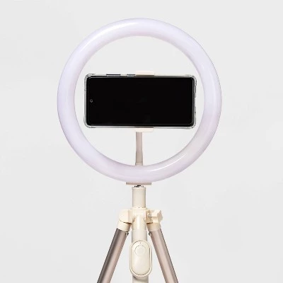Whether you’re shooting from your cell phone or a pro DSLR camera, say goodbye to blurry silhouettes and hello to well-lit views with the Ring Light with Tripod from heydayâ„¢. This multifunctional tripod makes it easy to take selfies, record videos, participate in Zoom meetings and more while taking care of pesky unwanted shadows to make your features pop to glowing perfection. The 10-inch diameter ring light features an adjustable color temperature and LED brightness setting to suit your space and preferred lighting, with a holder at the center that’s compatible with most cameras and phones. The holder rotates and can be used vertically or horizontally. An extendable tripod lets you fixate the view to show just your face or more of your surroundings, and a remote allows for hands-free shooting alongside a 33-foot Bluetooth range.