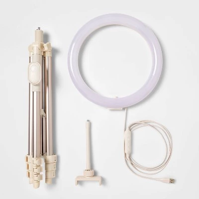 - 10in diameter ring light with adjustable color temperature and LED brightness