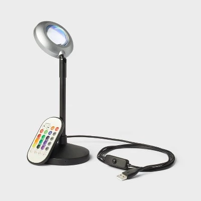 Create a captivating atmosphere with the Sunset Lamp by heydayâ„¢. The LED bulb casts a calming glow, offering lighting effects like dancing, flashing, fading, constant light, and color changing. Measuring 10.66 inches in height with a compact design, it’s a versatile addition to your decor accents. No assembly is required, and the generous 6-foot USB connection cord makes for easy placement. With an included remote control and CR2032 battery, this sunset lamp is convenient to set up and admire.
